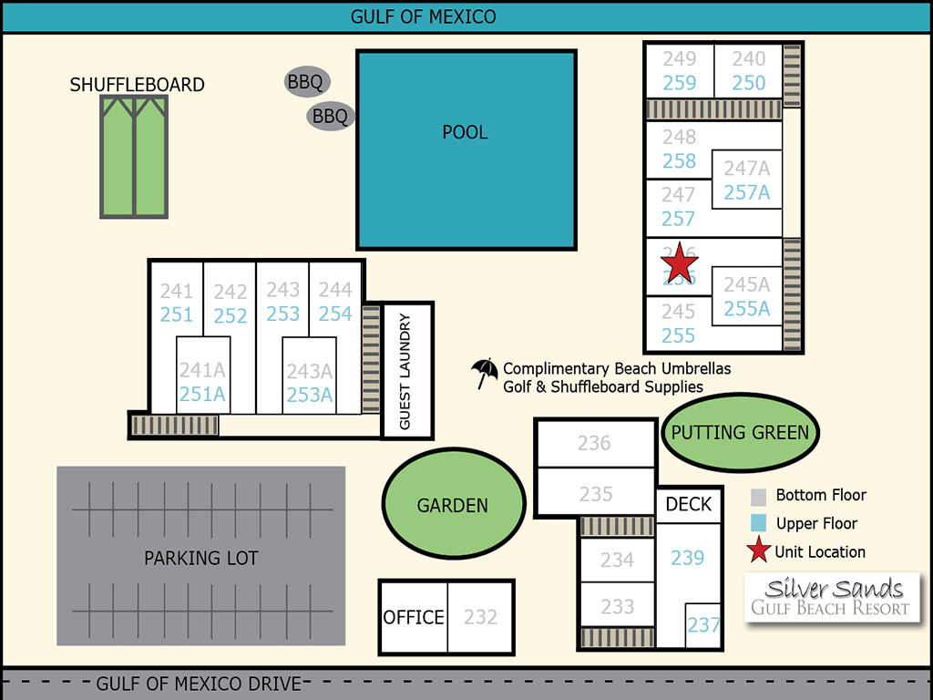 1 BR 1 BA 4 Guests ViewLanaiKitchenLanaiDining AreaDining/Living AreaBedroomLiving AreaBathroomLiving AreaKitchenLanaiLiving AreaBedroomBedroomExteriorPoolPoolPoolPutt Putt Putt PuttGardenExteriorExteriorExteriorBeach AccessBeach AccessExteriorPutt PuttAerialAerialAerialAerialUnit Location Request info Search Availability Location: 5841 Gulf Of Mexico Drive #256, FL 34228 View: Partial Beach ViewComplex: Silver Sands Gulf Beach Resort